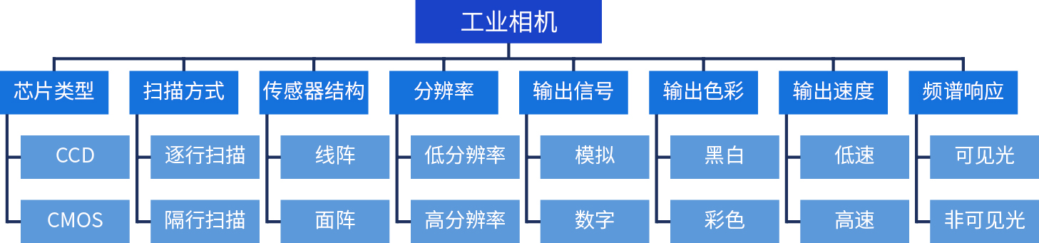藍洋智能科技在機器視覺項目中為企業(yè)精選主流高品質(zhì)工業(yè)相機及鏡頭,為生產(chǎn)流程中的質(zhì)檢環(huán)節(jié)提供強大的硬件支持。工業(yè)相機作為機器視覺的核心部件,其工作原理是通過光電探測器或圖像傳感器將外界光信號轉(zhuǎn)變成可被計算機處理的電信號,實現(xiàn)目標(biāo)圖像信息的采集。工業(yè)相機按照不同的指標(biāo)有諸多分類方式,選擇合適的工業(yè)相機是機器視覺系統(tǒng)設(shè)計中的重要環(huán)節(jié),不僅直接決定采集圖像的質(zhì)量和速度,同時也與整個系統(tǒng)的運行模式相關(guān)。
